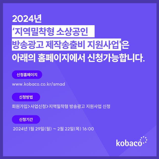 소상공인이라면 받을 수 있는 혜택이 다양하게 있습니다. 그중 방송광고를 통해 홍보 및 마케팅을 강화할 수 있는 기회가 있는데 바로 한국방송광고진흥공사에서 진행하고 있는 방송광고 제작 송출비 지원사업입니다.